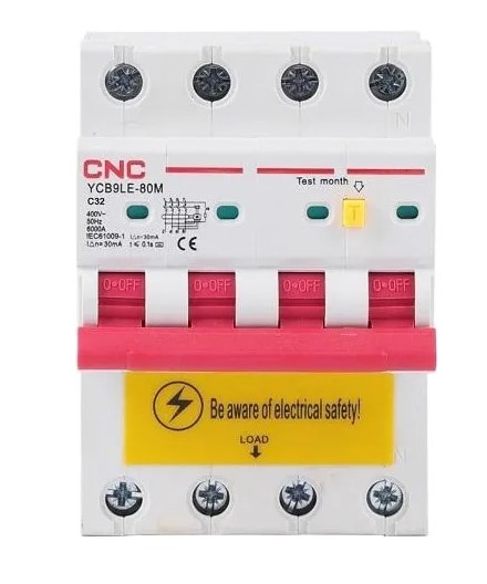 Диференційний автоматичний вимикач CNC YCB9LE-80M 4P C32 6000A 30mA 230V